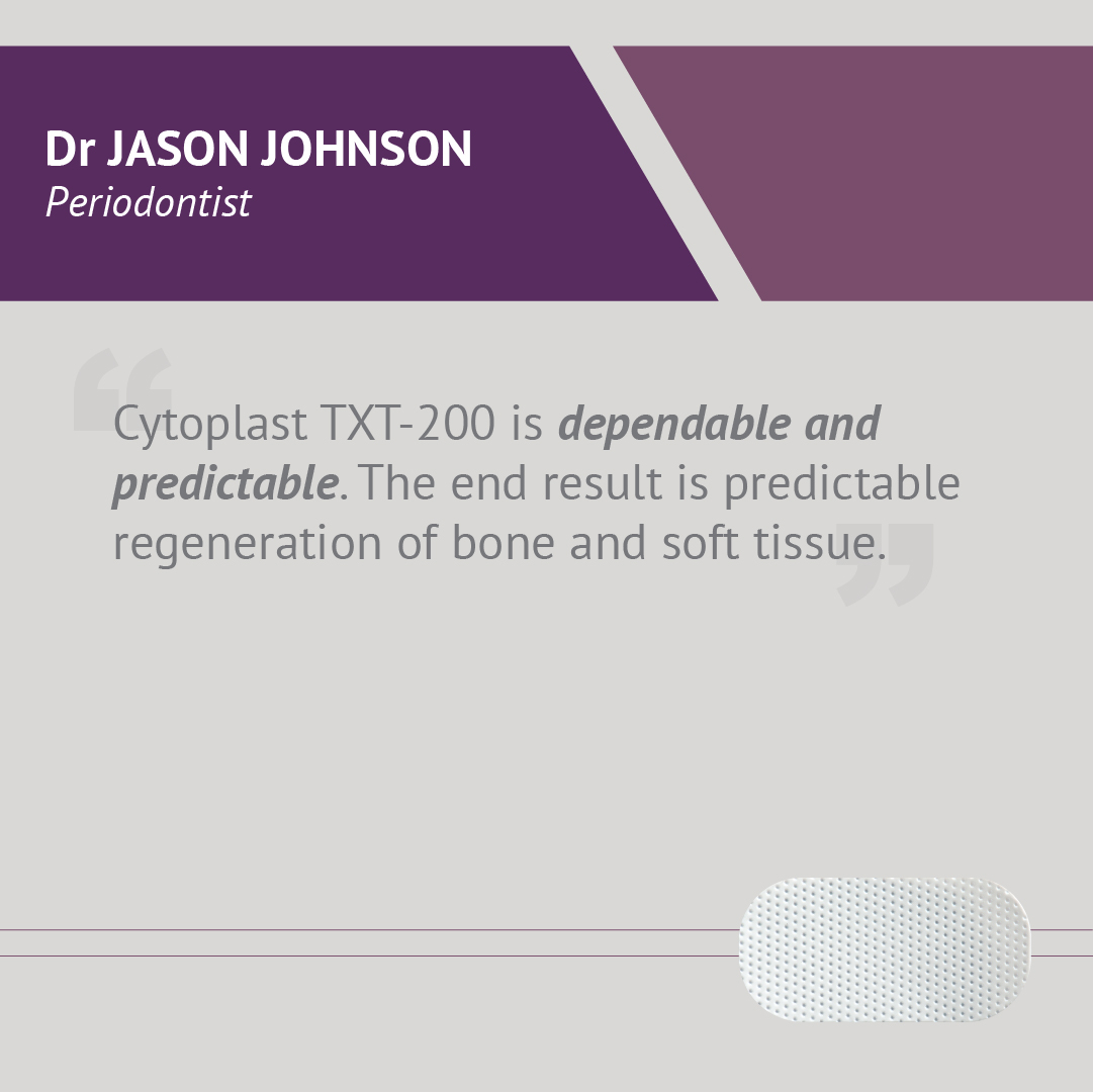 Cytoplast TXT2530 è indicata in tutti i casi di GBR dove si chiede un prolungato effetto barriera e non è necessario un rinforzo.