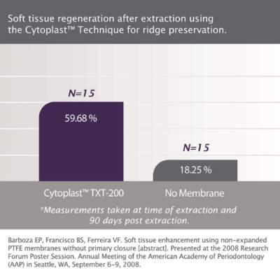 I materiali non porosi, come le membrane in PTFE denso (dPTFE), consentono una maggiore protezione batterica ma sono più soggette al rischio d’esposizione in quanto le cellule dei tessuti molli non possono aderire e integrarsi alla superficie del materiale. La nuova tecnologia ibrida delle membrane non riassorbibili in PTFE Cytoplast® TXT è disegnata per ottimizzare la performance e per ridurre i rischi.