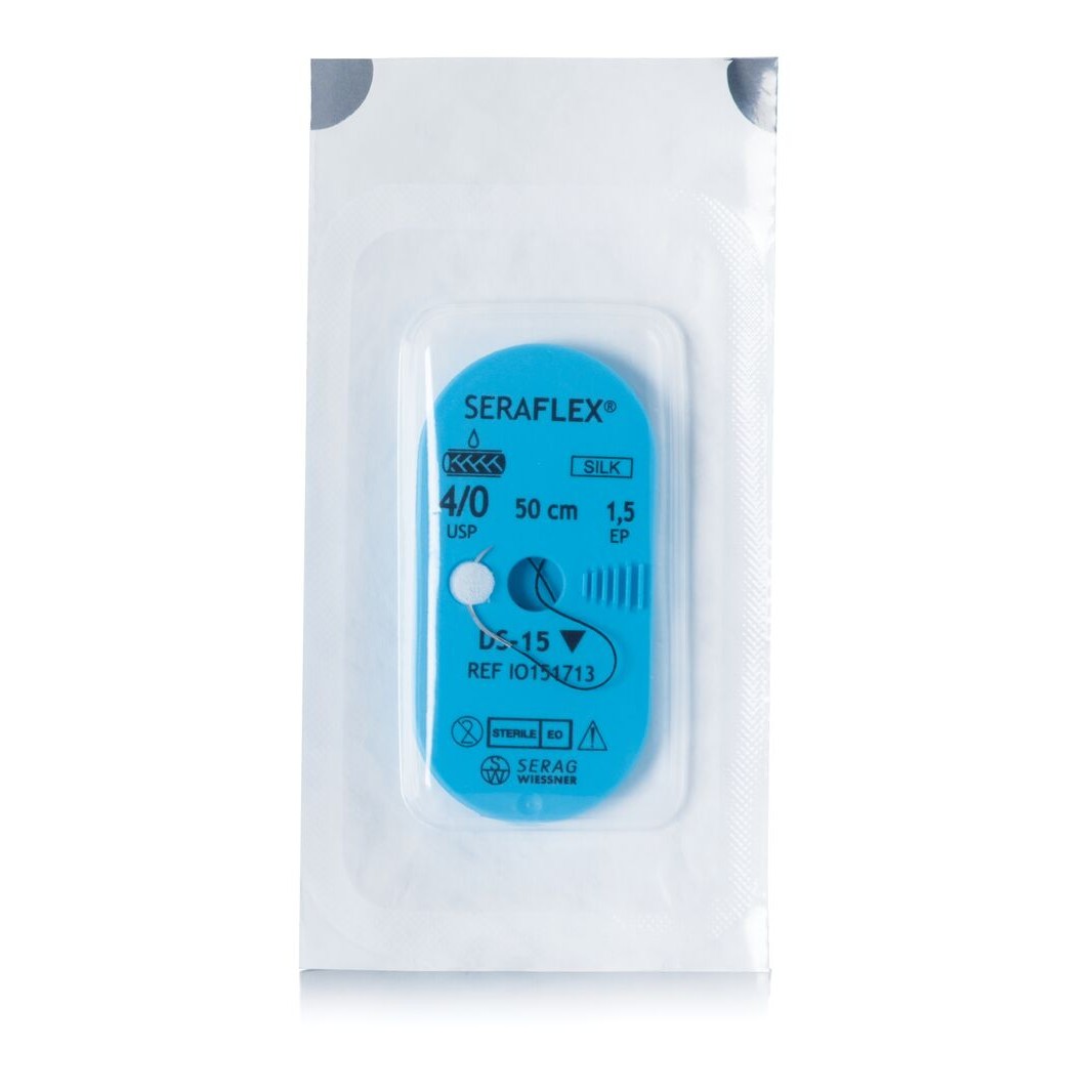 Seraflex è una sutura plurifilamento in seta in PTFE scelto tra le migliori qualità di bachi da seta; ottimo rivestimento in modo da renderlo molto scorrevole e resistente alle secrezioni del siero; ottima maneggevolezza e stabilità del nodo.